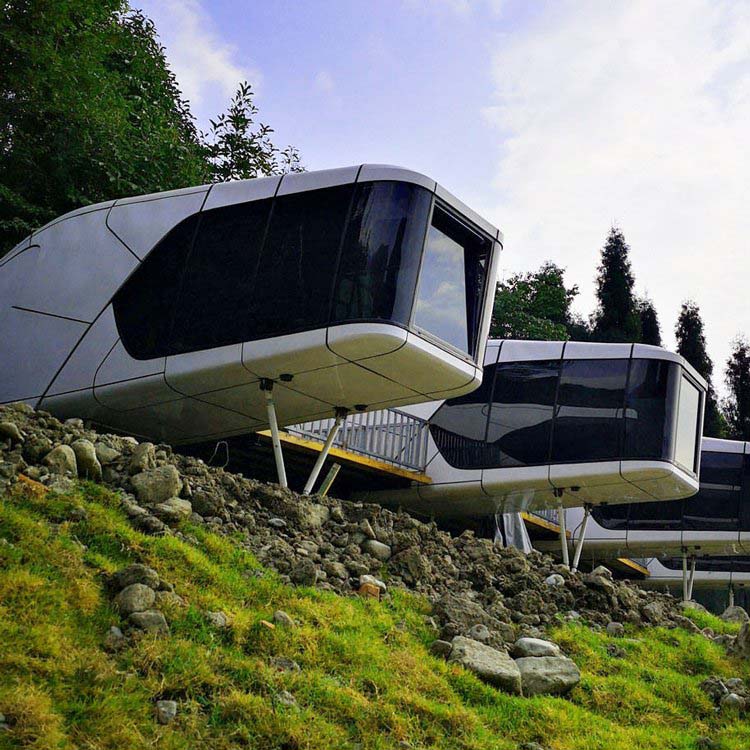 當您考慮使用太空艙搭建民宿時,以下是12個需要考慮的要點: 1.造型炫酷 太空艙的外觀設計獨特,未來感十足,可以吸引很多年輕人的目光。全鋁合金材料制造,防潮、耐用,可保持太空艙外觀的美觀和穩定性。 2.全屋